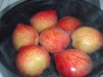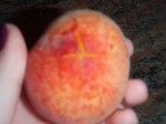 Score the bottom of each peach by using a small paring knife to make a small “x” at the base.