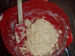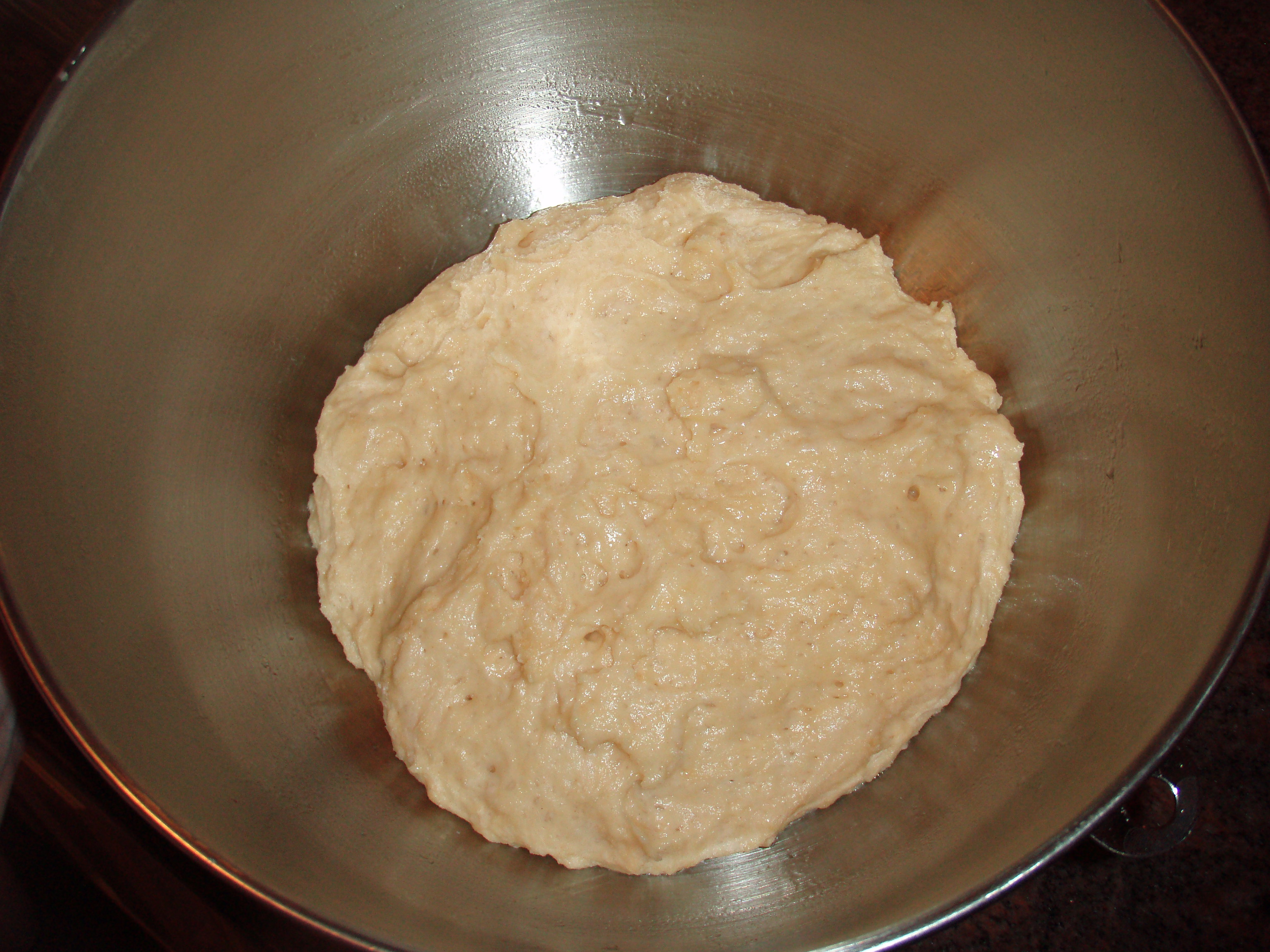 - Pour the yeast mixture over the egg mixture and mix with a spoon until you form a shaggy dough that is difficult to mix
