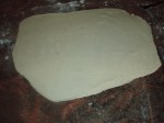 Now it’s time to work with the Puff Pastry and put the turnovers together. You’re only going to use about 1 pound of the Puff Pastry. Make sure to flour your work surface (This is VERY important! Even as you’re rolling be sure to check and add flour as needed so that the dough doesn’t stick to the surface) and roll out the Puff Pastry to a 17in by 9in rectangle (or as close to a rectangle as you can get), about 1/8 inch thick.