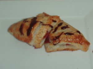 I was a senior in college and had just really gotten serious about baking. I was sitting around my apartment with my roommate Jan and my good friend Chris. I was asking if they had any baking ideas or anything they wanted me to try out. My roommate Jan (and this is why I love her) asked for chocolate chip cookies. To this day when I ask Jan what she wants me to bake for her, she always asks for chocolate chip cookies! Chris is another story. He started flipping though my baking books looking for something really good. He stumbles upon all different types of turnovers and he was sold. I took a look at the recipe and thought, oh that’s really not too bad, but little did I know that the “puff pastry” that it referred to was in the back of the book and roughly 3 pages long. By the time I realized what really went into making these turnovers, Chris was gone and Jan was grinning at me from the couch. I though: well, I asked for some ideas and I can’t back out now.